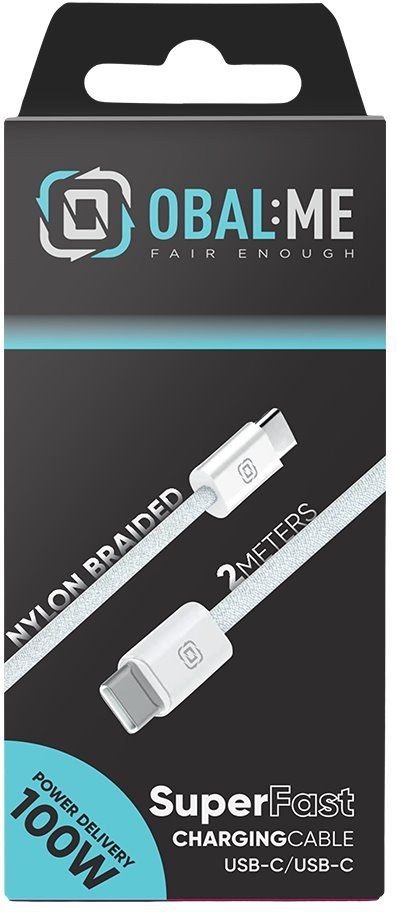 OBAL:ME Super Fast USB-C/USB-C pletený kábel, 100W, 2m, biely