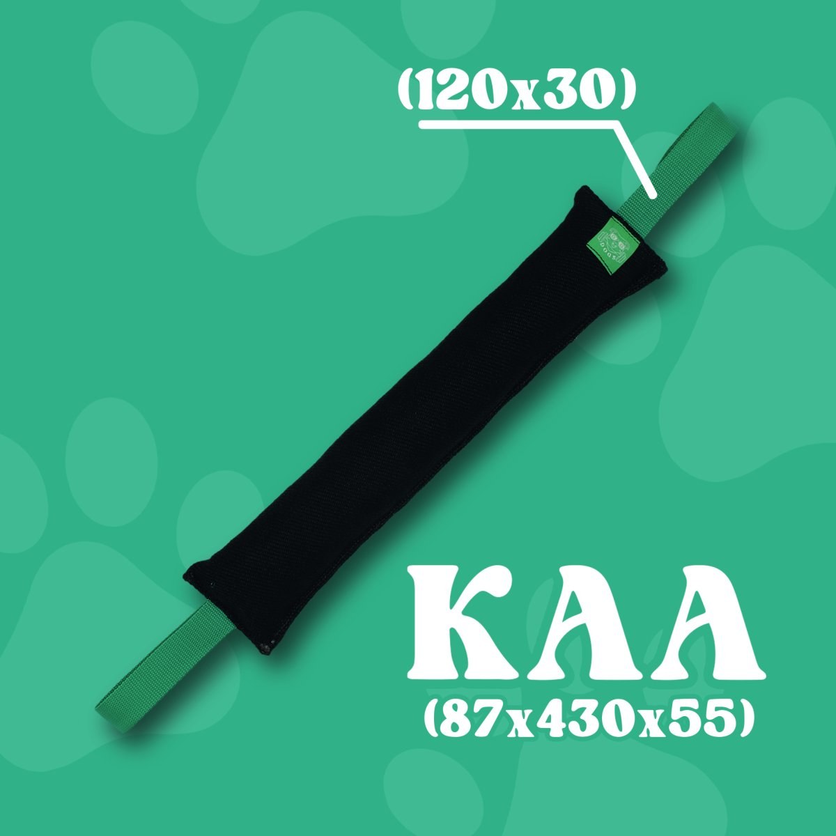 KAA z kolekcie 2024 je extra veľké kusadlo ponúkané značkou OG Sporting Dogs. Je vyrobené z kvalitnej ringo tkaniny a jeho vnútro je naplnené textilnou drťou. Rúčky sú zhotovené zo syntetického materiálu a celé je spojené kvalitným šitím syntetickou niťou, čo zabezpečuje maximálnu pevnosť. Tento model je ideálny pre služobnú kynológiu alebo ako zábava vo voľnom čase pre stredné a veľké psy. Dve rúčky umožňujú pevný úchop a dostatočná dĺžka poskytuje dosť priestoru na zakusnutie psa. K dispozícii je v troch farebných variantoch: čierna s rúčkou vo farbách zelenej, svetlozelenej a ružovej. Jeho tuhosť je označená stupňom 3, čo znamená, že je vhodnejší pre dospelých psov s pevným skusom.
