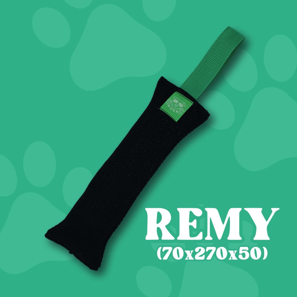 REMY z kolekcie 2024 predstavuje stredne veľké kusadlo z ponuky OG Sporting Dogs. Je vyrobené z kvalitnej ringo tkaniny, pričom jeho vnútro je naplnené textilnou drťou. Rukoväť je zhotovená zo syntetického materiálu a všetko je spojené kvalitným šitím syntetickou niťou pre maximálnu pevnosť. Tento model je ideálny na tréning vo väčšine disciplín bull športov alebo ako preťahovadlo pre stredne veľké a veľké psy. K dispozícii je v troch farebných variantoch: čierna s rukoväťou vo farbách zelenej, svetlozelenej a ružovej. Jeho tuhosť je označená stupňom 3, čo znamená, že je vhodnejší pre dospelých psov s pevným skusom.