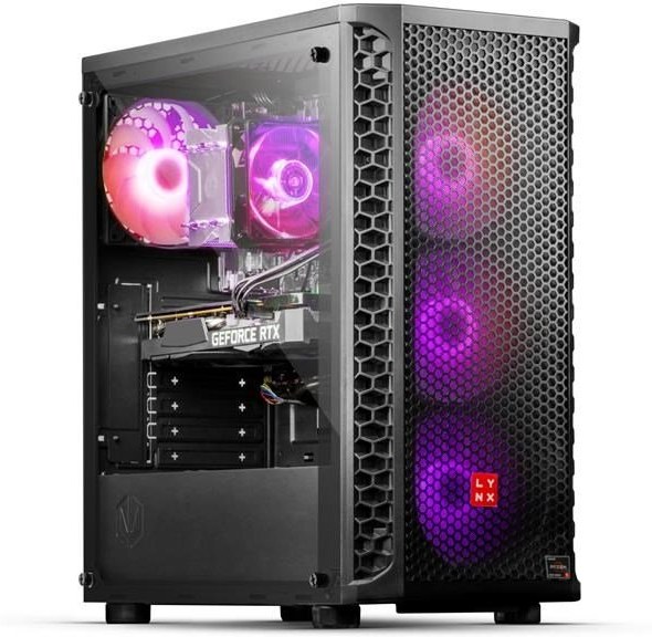 Základom zostavy je doska s čipovou sadou AMD B550 osadená 6jadrovým procesorom AMD Ryzen 5 5600, ktorý disponuje technológiou HyperThreading pre plynulejší multitasking, pracujúci na frekvencii 3.5 GHz, alebo až 4.4 GHz s technológiou turbo. Pamäte RAM značky Kingston sú pre zostavy LYNX štandardom, v tejto zostave sa jedná o pamäte s kapacitou 16 GB DDR4 (2x 8 GB). Plynulý obrazový výstup je zaistený grafickou kartou NVIDIA GeForce RTX 3060 Ti, ktorá disponuje 8 GB pamäte GDDR6. V tejto zostave nebrzdí ani úložisko je tu SSD disk 1 TB M.2 PCIe NVMe pre vaše všetky dáta a softvér. Dostatočné napájanie zaisťuje 650W zdroj. Zostava je dodávaná vrátane nového operačného systému Windows 11 Home.Záruka