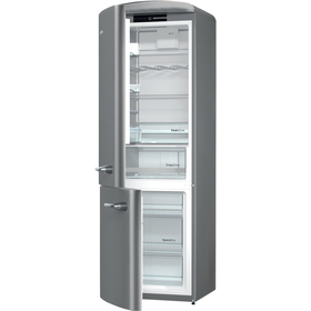 Kombinovaná chladnička s mrazničkou, dizajn Gorenje Retro, FrostLess: Menej ľadu v mrazničke, AdaptTech chladenie - inteligentný pamäťový systém, ionizátor vzduchu IonAir pre prírodnú mikroklímu, vnútorný ventilátor DynamiCooling pre rovnomerné chladenie, Elektronické ovládanie za dvierkami - LED display, Netto objem 227/95 l, Kapacita mrazenia 4,5 kg / 24h, Skladovacia doba pri poruche 18 h, LED osvetlenie, SuperCool: Rýchle schladenie, FastFreeze: Rýchle mrazenie s automatickým vypnutím, FreshZone zásuvka pre čerstvé potraviny s teplotou okolo 3 °C, CrispZone s HumidityControl: veľká zásuvka na zeleninu s reguláciou vlhkosti, Multibox 3v1, Držiak na fľaše, XXL SpaceBox zásuvka v mrazničke, Energetická triedaA ++, Rozmery výrobku (vxšxh) 194 × 60 × 64 cm, Strieborná, L - ľavé otváraniehttp://www.gorenje.sk/
