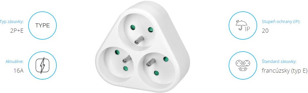 3 zásuvky typu FR s uzemnením, max. 16A, materiál plastZobraziť viac