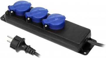 Odolné predlžovacie zásuvky odolné voči striekajúcej vode s káblom v gumovej izolácii. Poskytuje tri dodatočné uzemnené zásuvky s ochranou prúdového obvodu a tesniacimi krytmi, ktoré chránia zariadenie pred prachom, nečistotami a vodou. Zariadenie je vybavené háčikom, ktorý slúži na jeho zavesenie na bezpečné miesto. Má tiež štyri otvory, ktoré umožňujú montáž na pevné miesto. Kábel je dlhý 5m.Technická špecifikácia