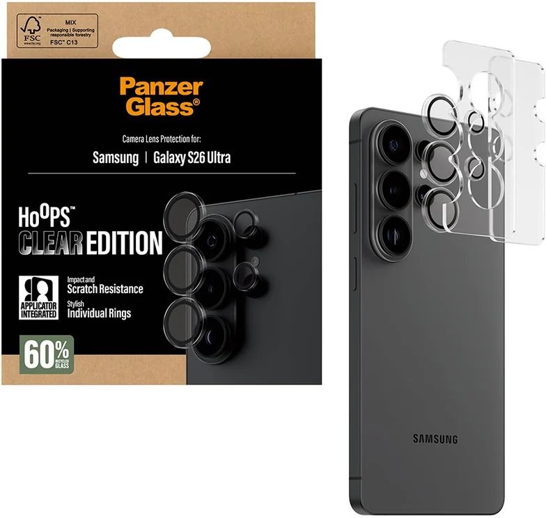 PanzerGlass™ Hoops pre Samsung Galaxy S26 Ultra prináša revolučný prístup k ochrane fotoaparátu prostredníctvom individuálnych krúžkov, ktoré starostlivo chránia každý objektív samostatne. Tieto precízne navrhnuté ochranné prvky kombinujú elegantný dizajn s maximálnou ochranou. Ich tenký profil dokonale splýva s telefónom, pričom transparentná úprava zachováva prirodzený charakter vášho zariadenia.