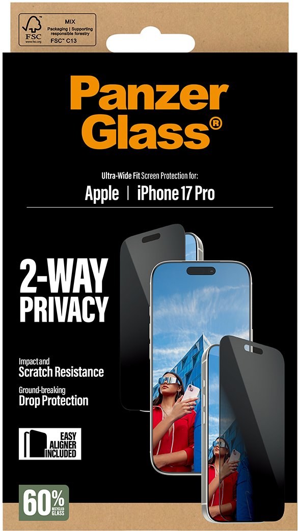 60 % recyklovaného skla, 100 % odolnostiOchranné sklo PanzerGlass™ pre iPhone 17 Pro prináša novú úroveň ochrany a udržateľnosti. Je vyrobené až zo 60 % z recyklovaného skla, čím znižuje ekologickú stopu, no zároveň si zachováva maximálnu pevnosť. Počas výroby je temperované v peci pri teplote 500 °C po dobu 5 hodín, čo mu dodáva špičkovú trvácnosť.