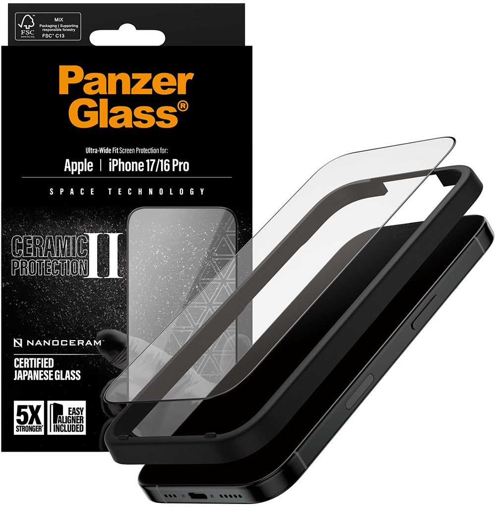PanzerGlass, Tvrdené sklo UWF Ceramic II s aplikátorom pre iPhone 17/16 Pro, čierna