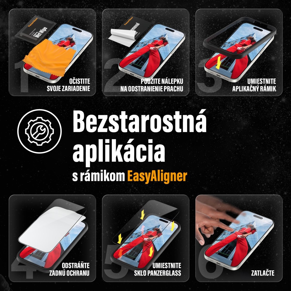 V balení každého ochranného skla PanzerGlass™ pre iPhone 17 nájdete praktický rámik EasyAligner, ktorý je vyrobený zo 100 % recyklovaného plastu. Práve vďaka nemu aplikujete sklo presne na stred displeja hneď na prvýkrát, aj keď ste to nikdy predtým nerobili.