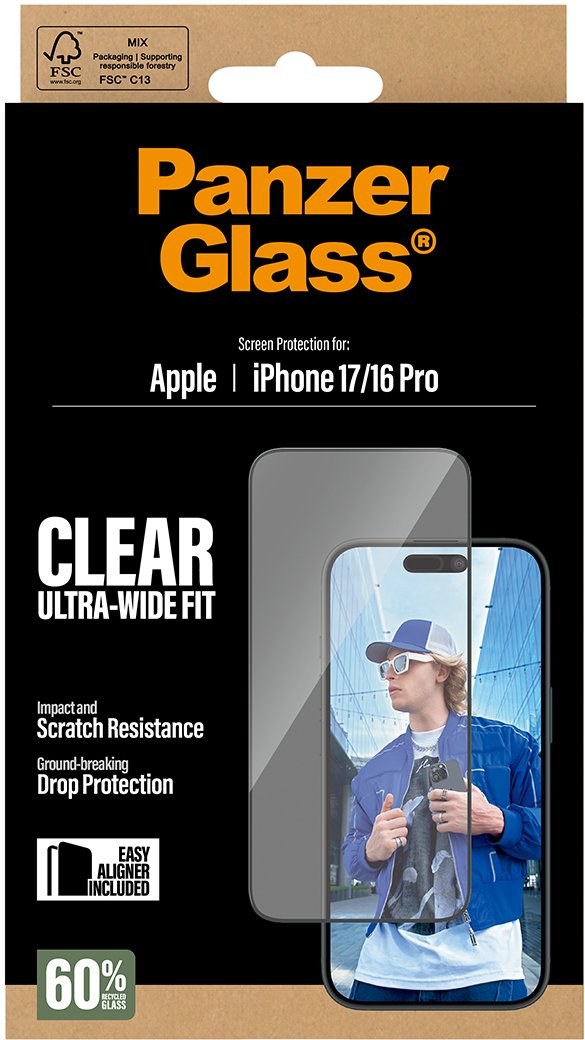 Ochranné sklo PanzerGlass™ pre iPhone 17 je precízne navrhnuté vo veľkosti Ultra-Wide Fit, čo znamená, že pokrýva celú prednú plochu telefónu až po okraje. Zároveň ponecháva drobný priestor na hranách, takže je plne kompatibilné s väčšinou puzdier a obalov.