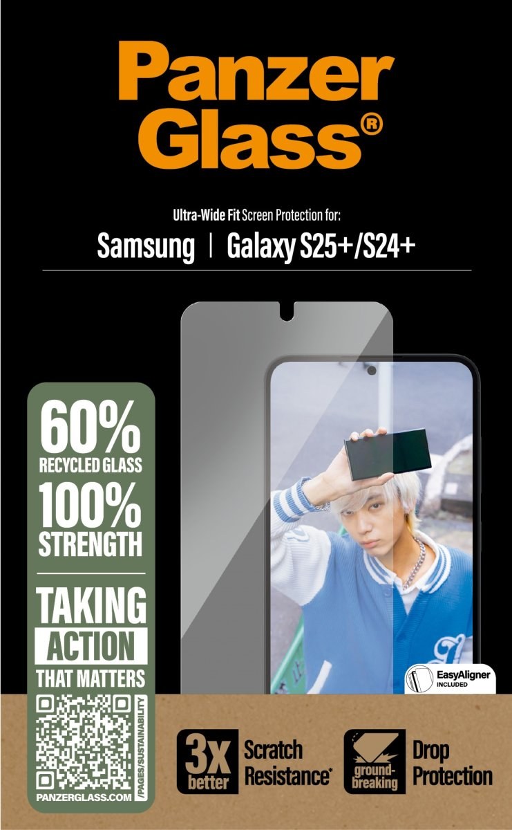 V balení každého ochranného skla PanzerGlass™ pre Samsung Galaxy S25+ nájdete praktický rámik EasyAligner, ktorý je vyrobený zo 100 % recyklovaného plastu. Práve vďaka nemu aplikujete sklo presne na stred displeja hneď na prvýkrát, aj keď ste to nikdy predtým nerobili.