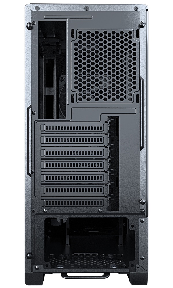 Skriňa formátu Middle Tower ponúka tri 2,5" pozície pre SSD disky a dve 3,5" pozície pre pevné disky. Na hornom paneli sa nachádzajú dva USB 3.0 porty, slúchadlový výstup a audio vstup pre mikrofón. Skriňa je vybavená dvoma 120 mm ventilátormi s RGB podsvietením, ktoré spolu s priehľadnou bočnicou zaisťujú vycibrený dizajn skrine. Dômyselné riešenie umožňuje pohodlné umiestnenie až 280 mm dlhého výmenníka vodného chladenia na prednej strane. V skrini je dostatok priestoru pre chladič CPU do výšky až 170 mm a grafickú kartu s dĺžkou až 400 mm. Skriňa je dodávaná bez zdroja. Súčasťou je aj sada prachových filtrov.