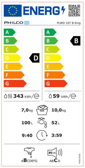 Predom plnená práčka so sušičkou Philco PLWD 107 B King, ktorá vyperie až 10 kg, vysuší až 7 kg bielizne, je v energetickej triede B/D, s možnosťou až 1500 otáčok za minútu pri odstreďovaní.Parný program SpaCare pre vyššiu účinnosť prania, ničiace baktérie a alergény. Invertorový motor s 10-ročnou zárukou, program 1hodina prania a sušenia, ktorý počas hodiny vyperie aj vysuší menšie množstvo bielizne a Crystal bubon, ktorý napomáha dokonalému výsledku prania a zároveň znižuje mechanické poškodenie bielizne.