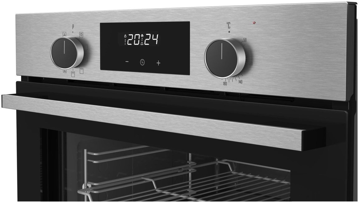 Oládanie kombinuje dotykový displej s klasickými otočnými gombíkmi. Je vybavená trojitým sklom vo dverách a vnútorným osvetlením. Vo výbave nájdete hlboký a plytký plech.