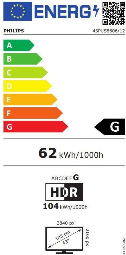 Registračné čísla EPREL: 441328Diagonálny rozmer obrazovky (v palcoch): 43