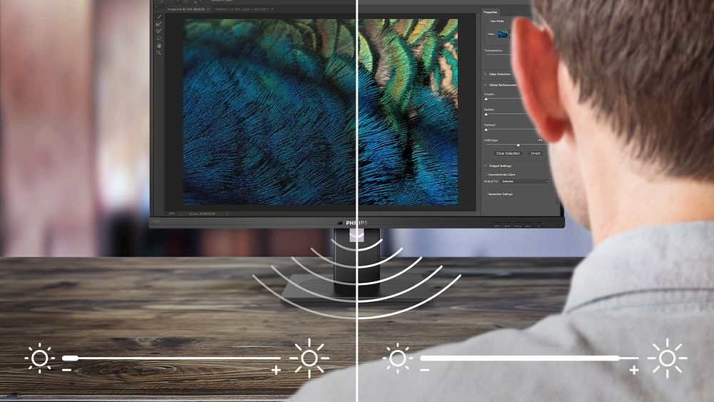 Monitor je vybavený certifikáciou DisplayHDR 400, ktorá zaručuje realistické farby, vyšší jas (až 500 cd/m2) a lepší kontrast. Funkcie ako SmartImage, SmartContrast (až 80 miliónov:1), Adaptive Sync a SoftBlue technológia chránia oči pred únavou a zlepšujú vizuálny zážitok. Antireflexná úprava povrchu displeja znižuje odlesky, čo oceníte najmä v jasne osvetlených miestnostiach. Monitor podporuje sRGB s Delta E < 2, čo je ideálne pre presnú prácu s farbami.