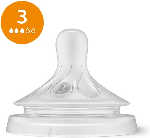 Každé dieťa sa vyvíja vlastným tempom, preto Philips ponúka cumlíky s rôznymi prietokmi. Ak dieťa pije príliš dlho alebo sa s cumlíkom len hrá, je vhodné zvoliť iný prietok. Systém navigácie toku je založený na tempe pitia, čo rodičom pomáha jednoducho nájsť správny variant. V prípade potreby je možné začať s cumlíkom „First Flow“ a neskôr prejsť na vyšší prietok.
