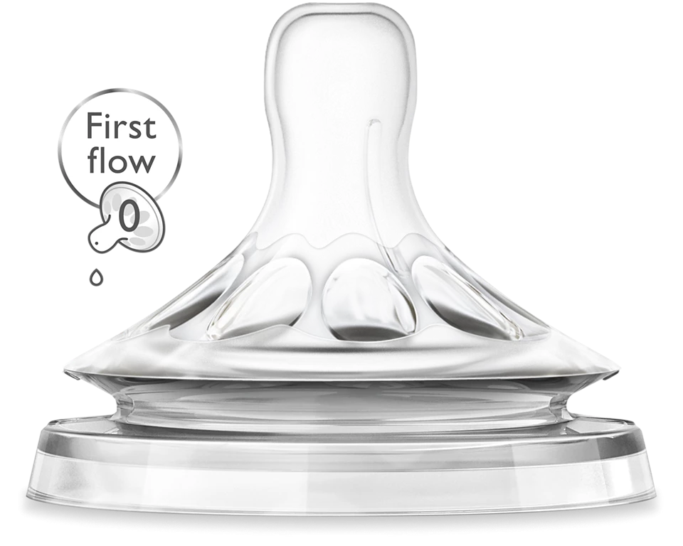 Cumlík Natural prvý prietok je vyrobený zo silikónu bez obsahu BPA, čo zaručuje bezpečné používanie už od narodenia. Je mimoriadne široký, navrhnutý pre prirodzené prisatie a určený špeciálne pre fľaše Philips Avent Natural. Jednotlivé cumlíky majú jeden otvor, ktorý zabezpečuje jemný a kontrolovaný tok mlieka vhodný pre novorodencov.