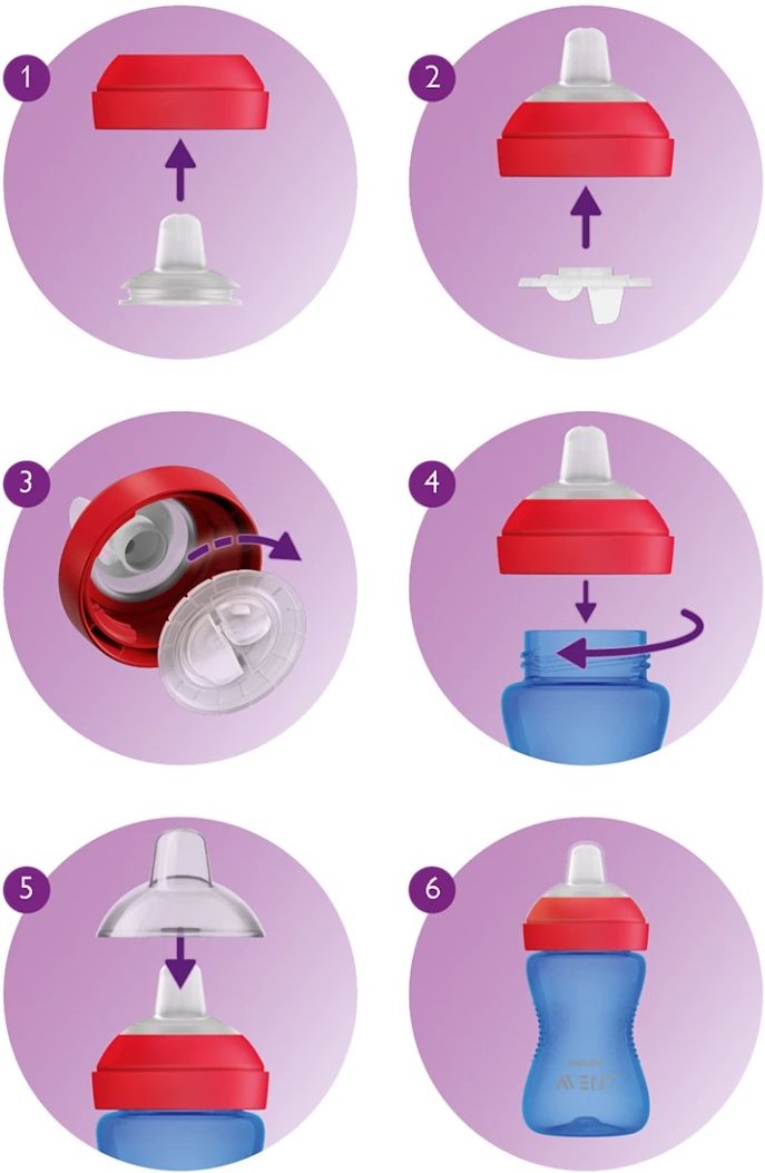 Pohár sa skladá z malého počtu súčastí, čo uľahčuje jeho zloženie a čistenie. Všetky časti sú vhodné do umývačky riadu, čo zvyšuje pohodlie rodičov. Dodáva sa s hygienickým uzáverom na ochranu náustku a je vyrobený z materiálov bez obsahu BPA, čo zaručuje bezpečnosť pre vaše dieťa.