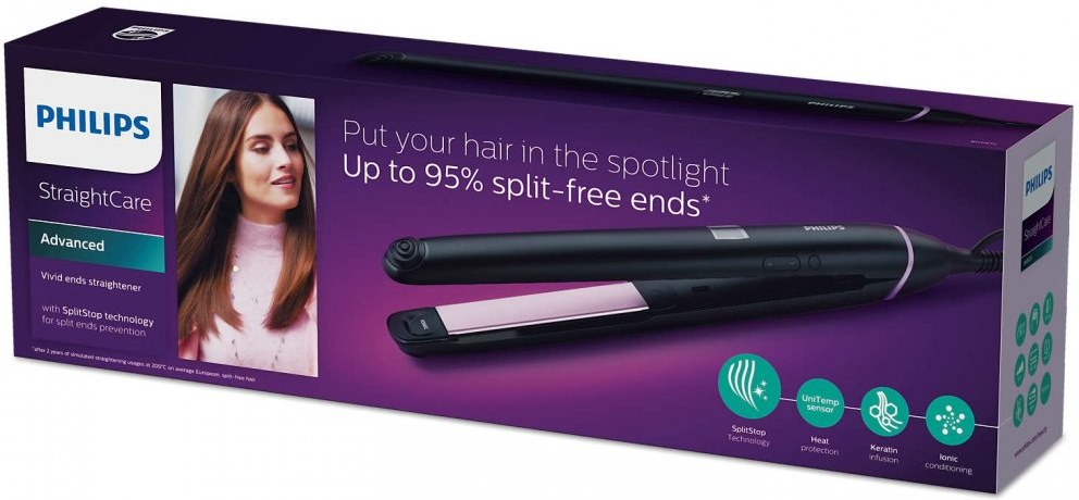 Žehlička na vlasyVyvinutá, aby chránila končeky vlasov pred rozštiepením vďaka SplitStop technológii