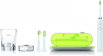 Elektrická kefka Philips Sonicare HX 9332/04 DiamondClean má nové programy pre bezpečné a šetrné odstránenie zafarbenia a oslnivý lesk. Telo kefky sa indukčne nabíja v sklenenom pohári s integrovanou nabíjacou stanicou. Pohár je teda určený pre výplach po čistení zubov aj pre nabíjanie. Cestovné puzdro je opatrené štandardnou USB koncovkou pre pohodlné nabíjanie na cestách aj cestovnou nabíjačkou. "Diamond Clean"sonická stíravý pohyb