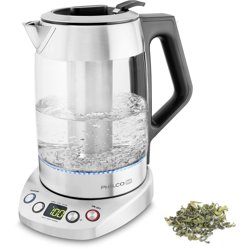 Rýchlovarná kanvicaAký čaj máte najradšej? Čierny, zelený, biely, oolong alebo snáď bylinkový? S kanvicou Philco PHWK 2050 si ich môžete pripraviť napríklad všetky. Vďaka inteligentnému podstavci už nebude žiadny vašu požiadavku prehnaný. Všetko si nastavíte tak, ako to máte radi. Moderné technológie a krásny dizajn, to je nová sklenená kanvica Philco.