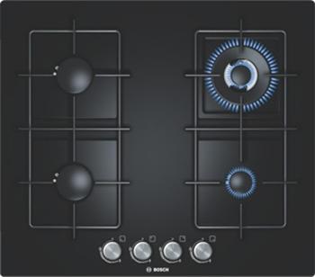 4 plynové hořáky (1x WOK 3,3 kW), el. jiskrové zapalování v knoflíku, pojistka zhasnutí plamene, ovládání vpředu, smaltované podložky, rozměry: v x š x h 5,8x59x52 cm, černé tvrzené sklohttp://www.bosch-home.com/sk/