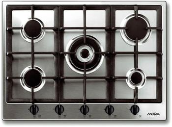 5 plynových horákov (1 dvojitý), poistky horákov STOP GAS, el. zapaľovanie v gombíkoch, 3 liatinové mriežky, šírka 70 cm, matná nehrdzavejúca oceľwww.mora.sk