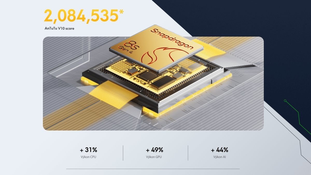 Vlajková séria Snapdragon® 8s Gen 4 sa teraz pýši architektúrou All-Big-Core, postavenou na pokročilom 4 nm procesore spoločnosti TSMC. S maximálnou taktovacou frekvenciou 3,21 GHz poskytuje čipset výnimočný výkon a ľahko zvláda náročné úlohy pre plynulý používateľský zážitok.