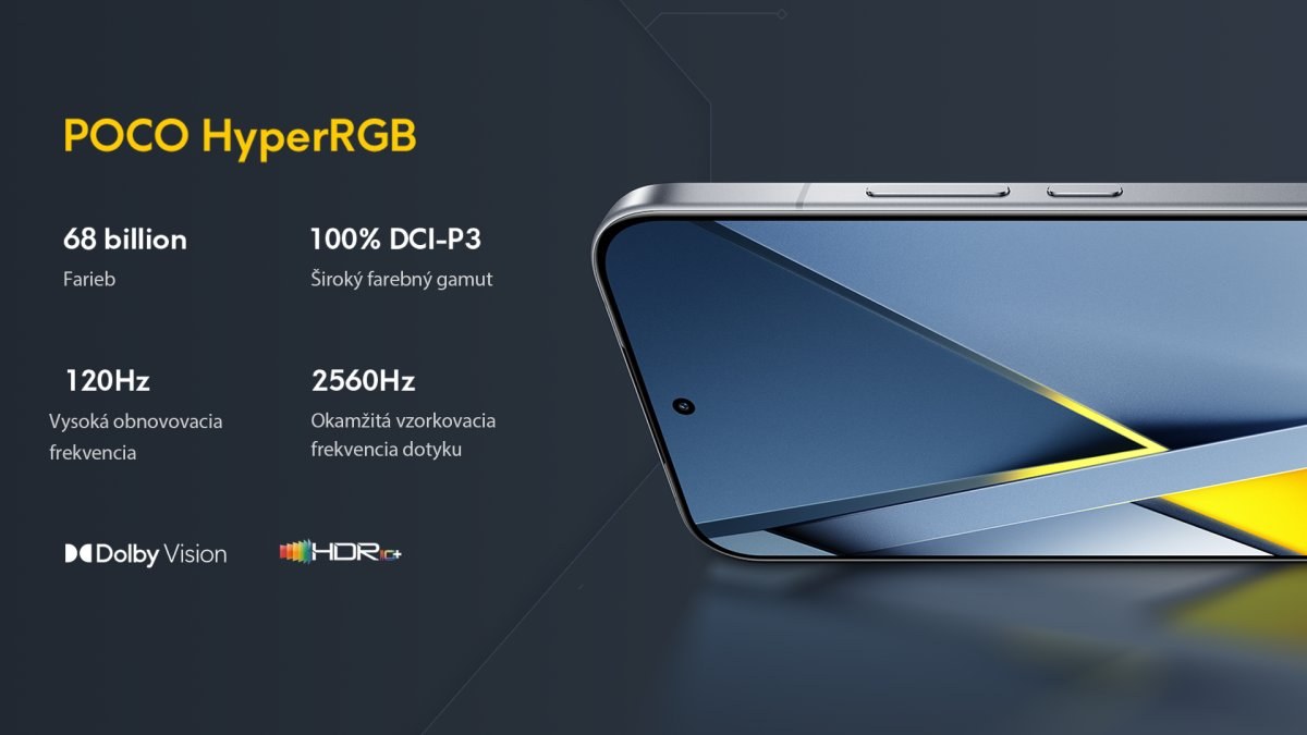 Vlastnosti displeja: 68 billion colors, Wet Touch display 2.0, HDR10+, Dolby Vision®, POCO Shield Glass