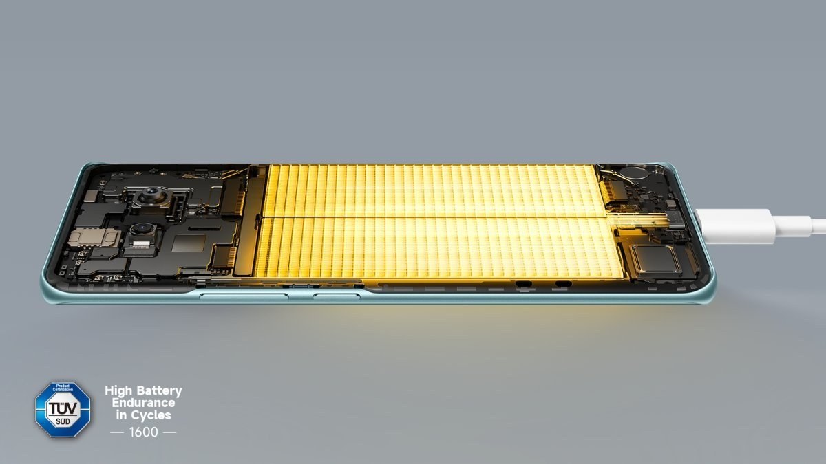 Zariadenie disponuje batériou s kapacitou 5520 mAh a podporuje 45W rýchle nabíjanie. Vďaka viacnásobnej ochrane si batéria zachováva viac ako 80 % svojej kapacity aj po 1 600 nabíjacích cykloch.Hlavný snímač s veľkou clonou