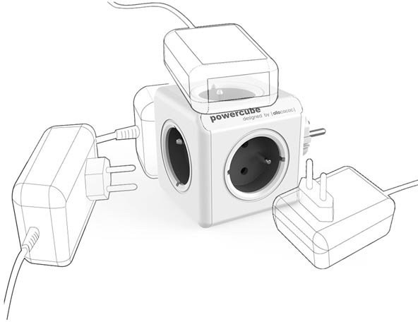 PowerCube elektrická rozdvojka 230V 5x zásuvka bielo-čierna