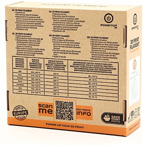 – Teplota trysky: 190-240 °C– Rýchlosť tlače: podľa doporučení tlačiarne alebo typu modelu