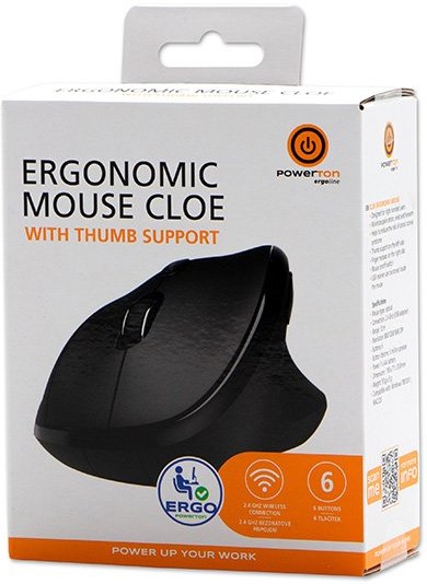 Powerton Ergo Cloe, ergonomická bezdrôtová myš, čierna