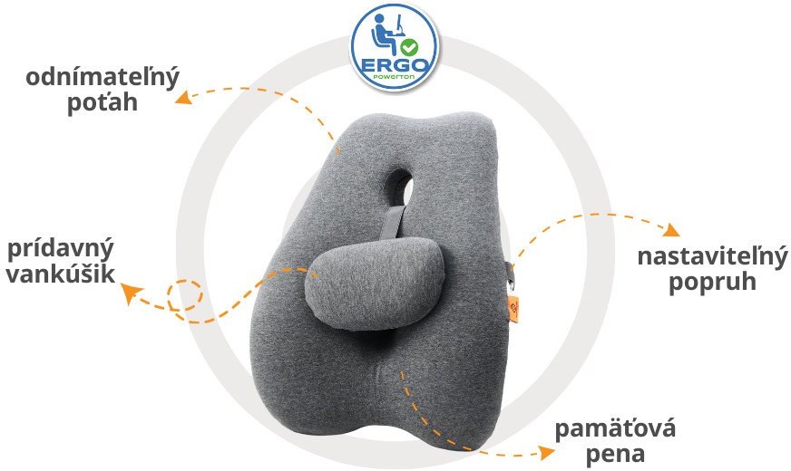 Powerton Ergo Lumba, ergonomická bedrová opierka, pamäťová pena, sivá
