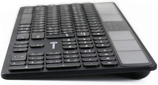 Najtenšia časť klávesnice má iba 5 mm. Tomu je prispôsobený taktiež nízky design kláves s konkávnym tvarom pre pohodlné písanie. Pre ľahký prístupk médiám a internete slúži štrnásť multimediálnych kláves.
