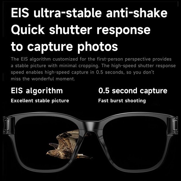 Okuliare Powerton EYON sú navrhnuté na každodenné nosenie – vážia iba 41,8 g, takže ich na hlave takmer neucítite. Vďaka odolnosti IP68 bez problémov zvládnu prach, dážď aj športové aktivity.AI funkcie