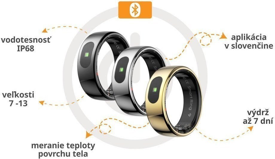 inteligentný prsteň, veľkosť 13, vodeodolnosť IP68, meranie tepu, oxymeter, monitoring spánku, meranie telesnej teploty, výdrž batérie 7 dní, podpora Android, iOS, aplikácia v slovenčine, materiál zliatina hliníka, farba striebornáZobraziť viac