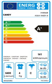 Popis produktu: Práčka Candy Aqua 1042 D1Slim práčka Candy Aqua 1042 D1 je určená pre 4 kg. prác náplne. Patrí medzi spotrebiča veľmi úsporné energetickej triedy A +. Je vybavená technológiou Fuzzy Logic, ochranou proti pretečeniu, odloženým štartom, automaticky riadeným odstreďovaním a vyvážením a prehľadným LCD displejom. Ponúka hlučnosť pranie 56 dB a odstreďovaní 78 dB.