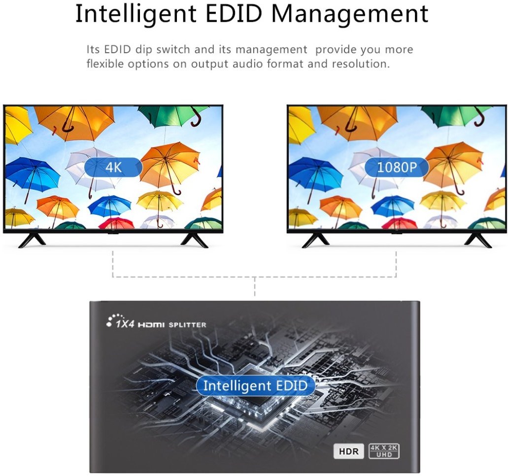 - EDID prepínače umožňujú nastaviť rozlíšenie.