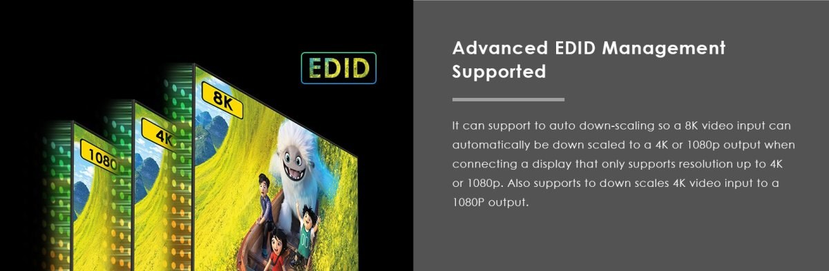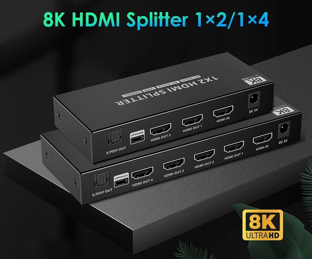 Zariadenie umožňuje pripojiť dve HDMI obrazovky (TV, monitor) k jednému zdroju signálu, ako je PC, notebook, DVD prehrávač alebo set-top box. Vďaka funkcii automatického EDID down-scalingu môžete súčasne pripojiť monitory s rôznym rozlíšením (napr. 8K a 4K alebo Full HD), pričom splitter signál automaticky prispôsobí.Technické parametre