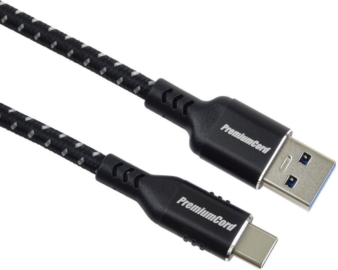 PremiumCord kábel USB-C - USB 3.0 A (USB 3.2 generation 1, 3A, 5Gbit / s) bavlnený oplet a kovové hliníkové konektory