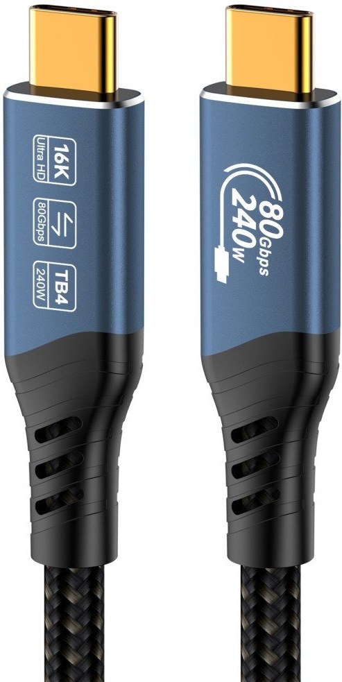 PremiumCord USB4™ Version2.0 80Gbps kábel, 16K@60Hz, 240W čierny 0,8m