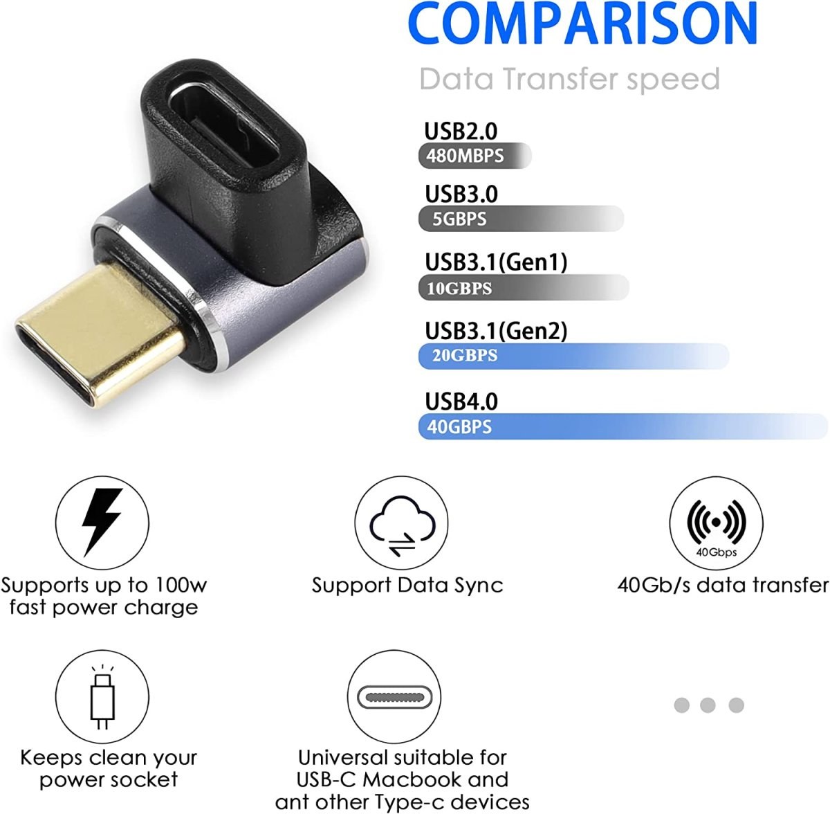 - USB 4.0: Podporuje až 100W napájanie, poskytuje najrýchlejšie nabíjanie vášho zariadenia. Rýchlosti prenosu dát až 40 Gbps vám umožnia prenášať súbory s veľkou kapacitou, ako sú HD videá, v priebehu niekoľkých sekúnd. Poskytuje plynulé video fotografie pre monitory 4K a 8K