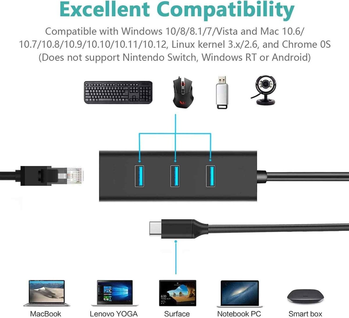 USB-A a USB-C Hub na LAN 10/100/1000Mbps + 3x USB 3.2Zobraziť viac