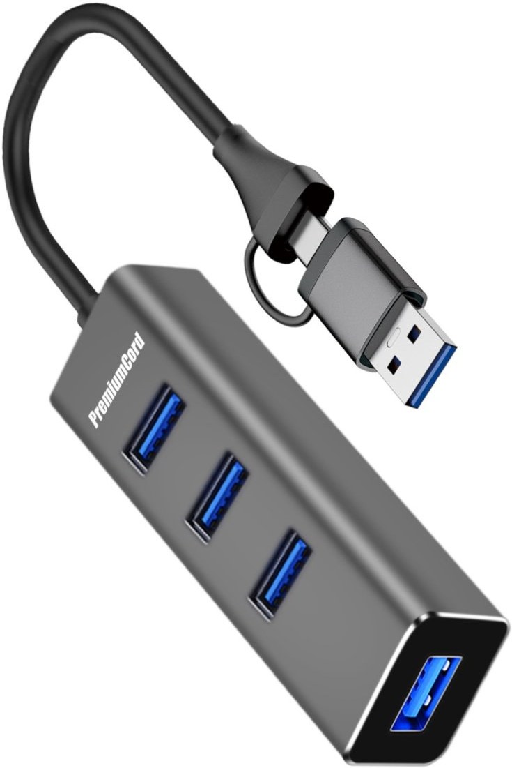 PremiumCord USB3.2 Hub USB-C a USB-A na 4x USB-A 3.2 Gen 1 je výkonný USB rozbočovač umožňujúci pripojiť až štyri zariadenia do jedného USB portu. Hub podporuje rýchlosť prenosu dát v režime SuperSpeed USB 3.2 Gen 1 až do 5 Gbps, čo zaručuje rýchle a stabilné pripojenie USB periférií.Technické parametre