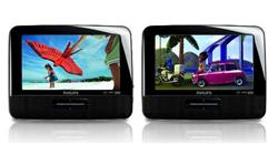 Prenosný DVD prehrávač s dvoma samostatnými LCD displejmi a DVD mechanikami - sledujte rôzne filmy oddelene alebo sa podeľte o jeden film na oboch prehrávačoch, 2 x 7" (18 cm) LCD, Až 2 hodiny prehrávania filmu so vstavanou batériou, Prehráva DVD, DVD+/-R, DVD+/-RW, (S)VCD, DivX, MPEG4, JPEG, MP3-CD, CD a CD-RW, Certifikované pre DivX, Obnova prehrávania DVD pri výpadku napájania, Inteligentné upevnenie do auta, cestovné puzdro, adaptér do auta je súčasťou balenia, 2x súprava slúchadiel, cestovná taškaObraz/Displej