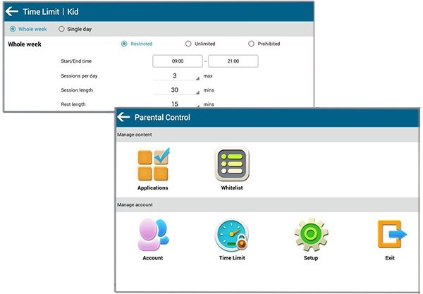 SmartKids má zabudovanú bezplatnú funkciu rodičovskej kontroly! Táto funkcia zabraňuje prístupu k nevhodným stránkam a aplikáciám, čím zabezpečuje kontrolu nad činnostnou vášho dietata. Ak nechcete, aby vaše diéta trávilo hodiny pred obrazovkou, môžete obmedziť čas prevádzky tabletu a skontrolovať správy o činnosti.OBSAH PRE DETI