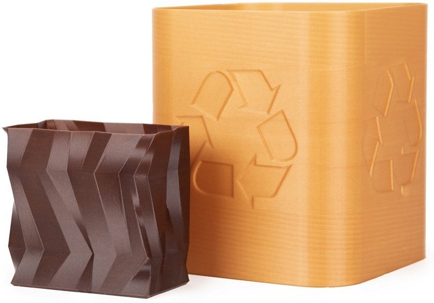 Prusament rPLA Natural Pigments je náš nami recyklovaný PLA filament s obsahom prírodných pigmentov. Filament je vyrobený z odpadu z výroby PLA komponentov, ktorým nás zásobuje náš externý dodávateľ. Na sfarbenie filamentu nepridávame žiadne umelé farbivá, využívame pigmenty zo spracovaného organického odpadu, napríklad z červených rias. Tieto organické prísady vydávajú pri tlači špecifickú vôňu.Prusament rPLA Natural Pigments má mechanické vlastnosti podobné bežnému PLA, je však o niečo krehkejšie a hygroskopickejšie. Všeobecne sa PLA používa na výrobu rôznych estetických modelov, prototypov a ďalších pohľadových výtlačkov. Vďaka Prusament rPLA Natural Pigments je možné tieto modely vyrábať s výrazne nižším ekologickým dopadom. V neposlednom rade dodávajú prírodné pigmenty rPLA príjemné jemné farby, ktoré sa dokonale hodia na rôzne bytové dekorácie a ďalšie estetické účely.