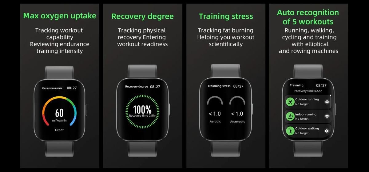 Nechýba ani podpora NFC, ktorá umožňuje bezkontaktné platby či rýchle pripojenie. Hodinky sú vybavené senzormi na meranie srdcového tepu, okysličenia krvi (SpO2) a pohybu. Vodeodolnosť 5 ATM zaručuje odolnosť voči vode, a kompatibilita s Android aj iOS systémami zabezpečuje široké možnosti využitia.