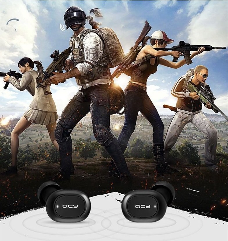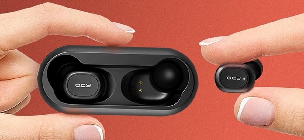 QCY - T1C, bezdrôtove slúchadlá s nabíjacím boxom, čierne