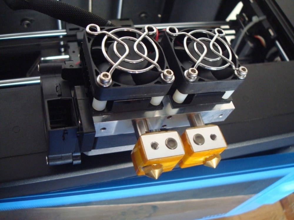 Qidi Tech X-Pro má jedinečný extrudér s dvojitým priamym pohonom. Takže môžete tlačiť v dvoch farbách bez výmeny cievok s filamentmi!4-stranný turbo ventilátor